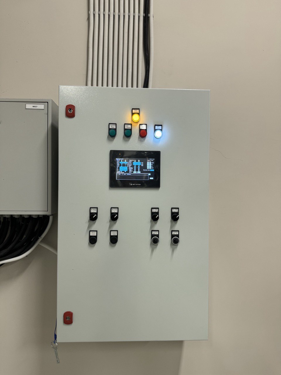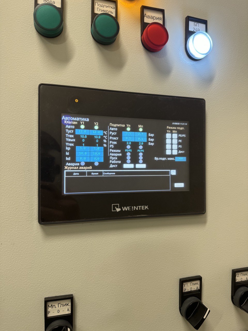 Режим управления выбирается соответствущим системе переключателем Р-О-А на дверце шкафа.